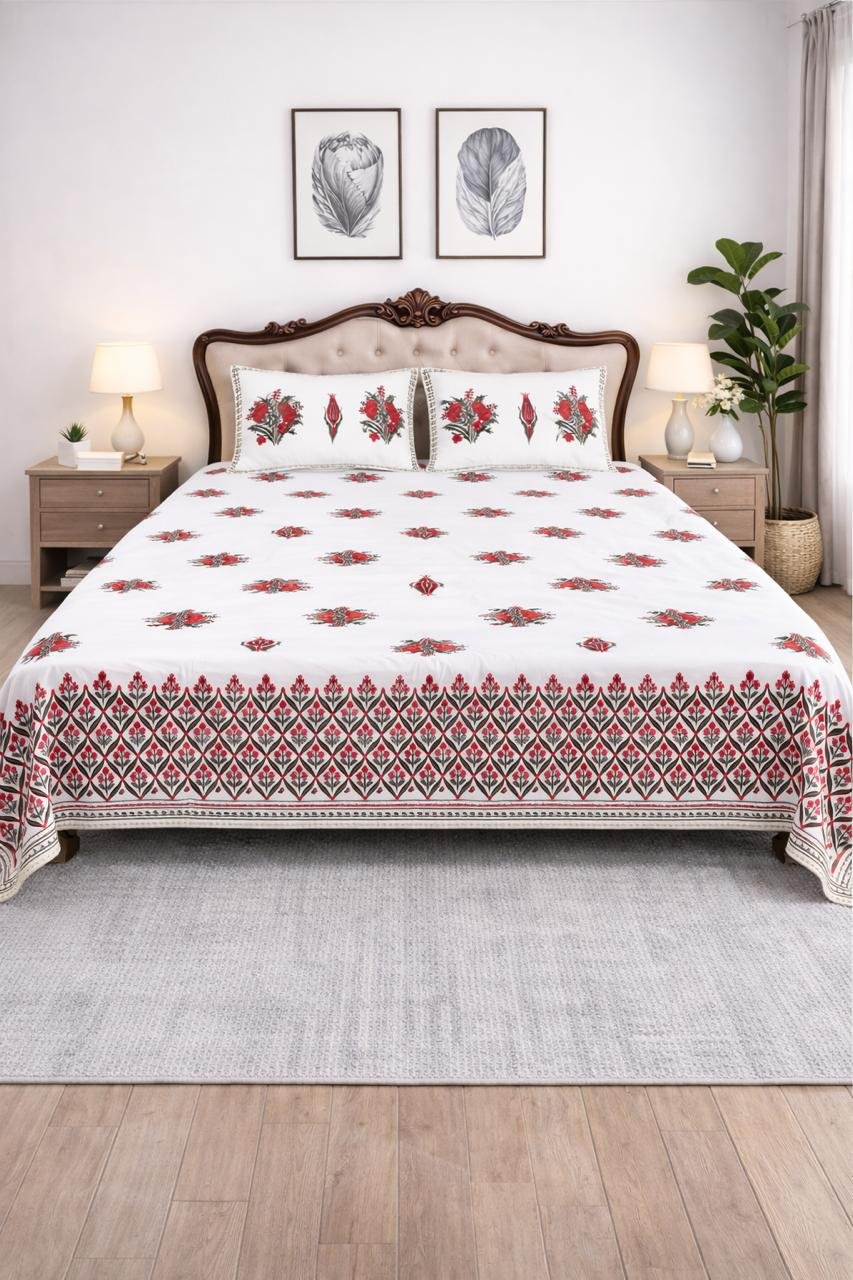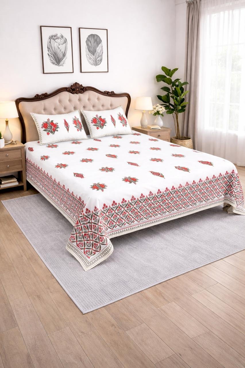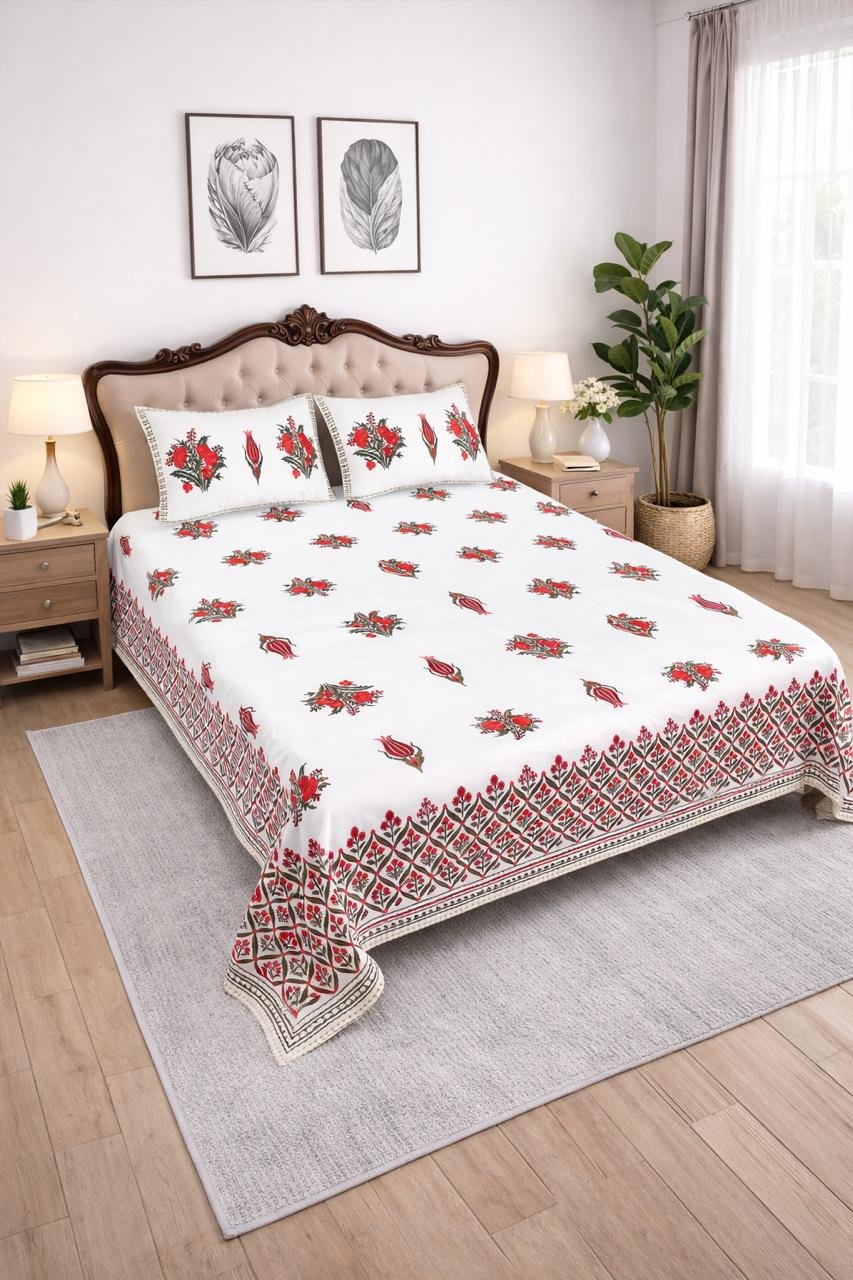 Add traditional elegance to your bedroom with our Exclusive Jaipuri Bagru Hand Block Printed King Size Bedsheet Set, crafted to bring comfort, style, and festive charm to your home.