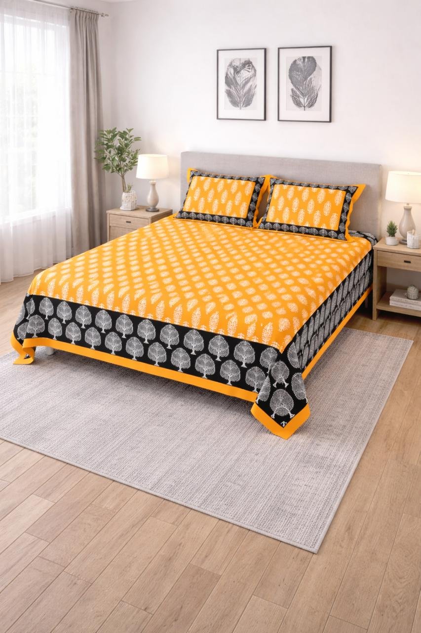 Add traditional elegance to your bedroom with our Exclusive Jaipuri Bagru Hand Block Printed King Size Bedsheet Set, crafted to bring comfort, style, and festive charm to your home.