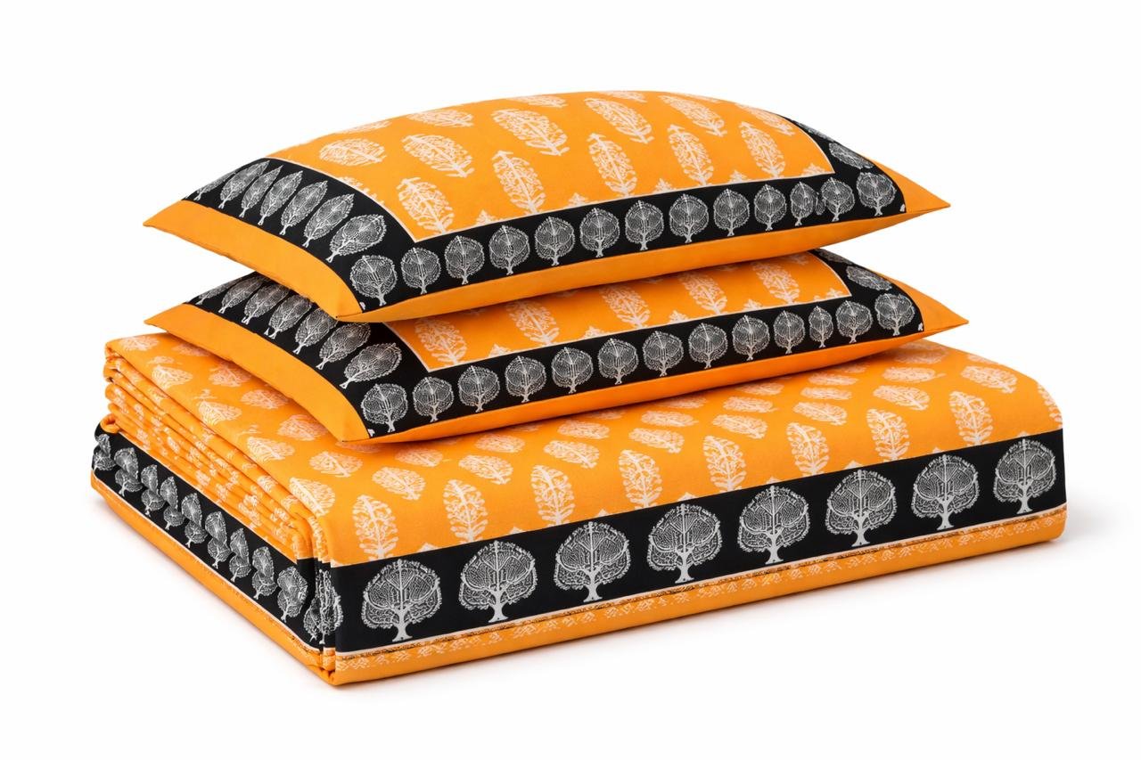 New Festival Collection king size bedsheet featuring exclusive Jaipuri Bagru hand block print. Made from pure cotton (90×108 inches) with 2 zip pillow covers, offering comfort, elegance, and festive charm.