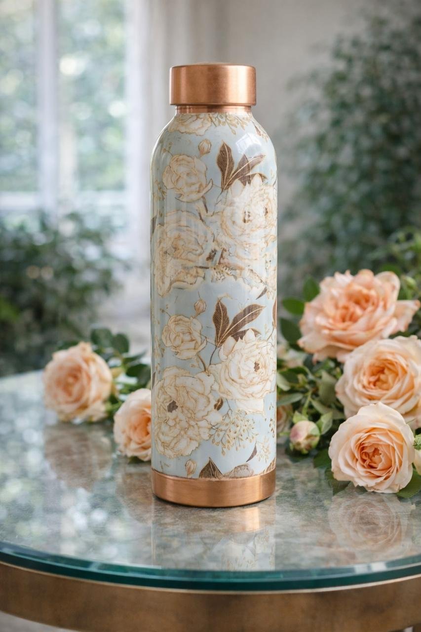 100% Pure Copper Water Bottle – Premium Printed Design
