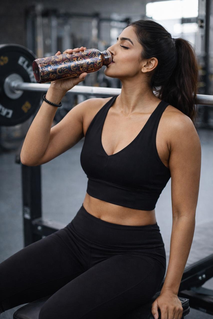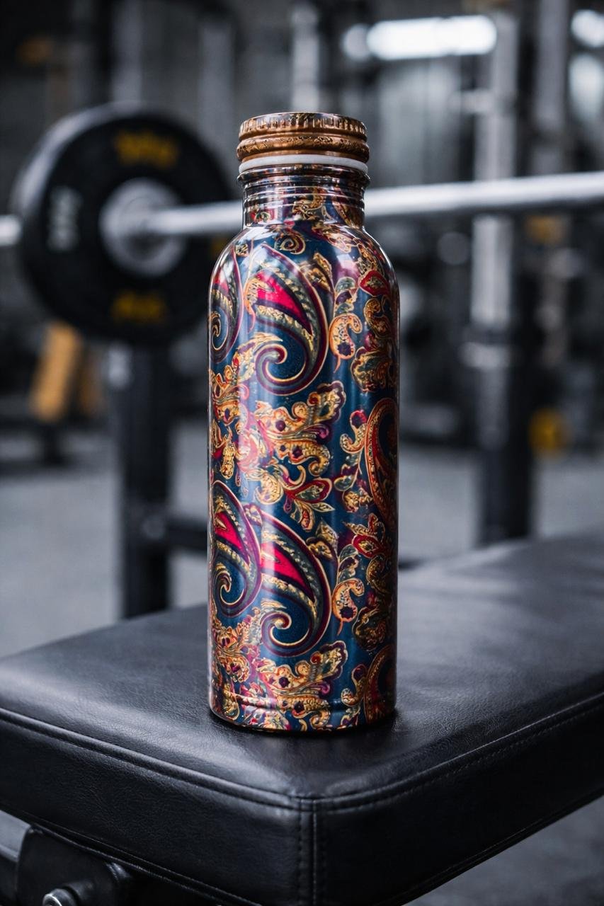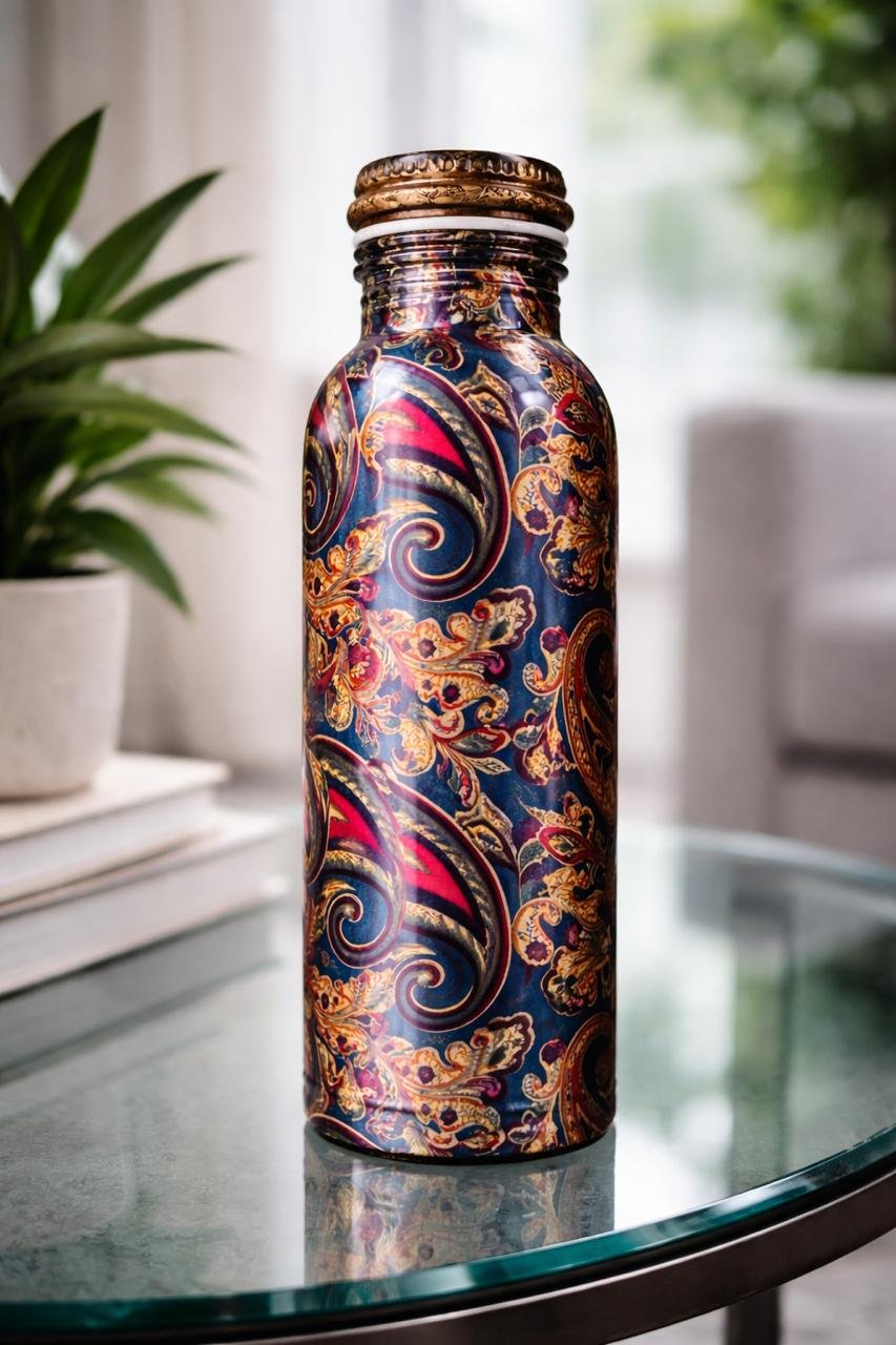 Experience the goodness of tradition with this 100% pure copper water bottle, beautifully crafted with an elegant printed finish. Designed to combine health benefits with luxurious aesthetics, this bottle is ideal for daily use at home, office, gym, or travel.