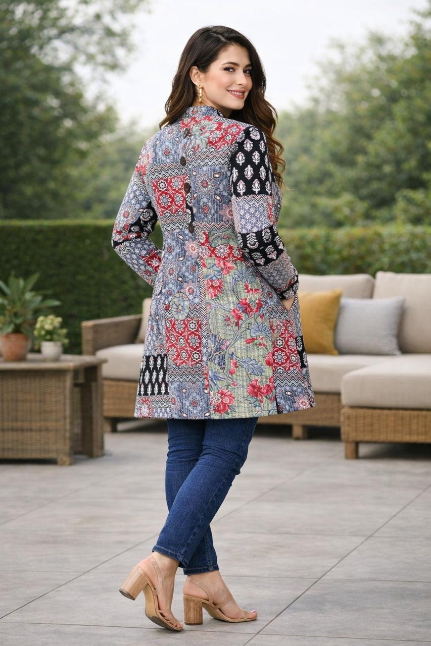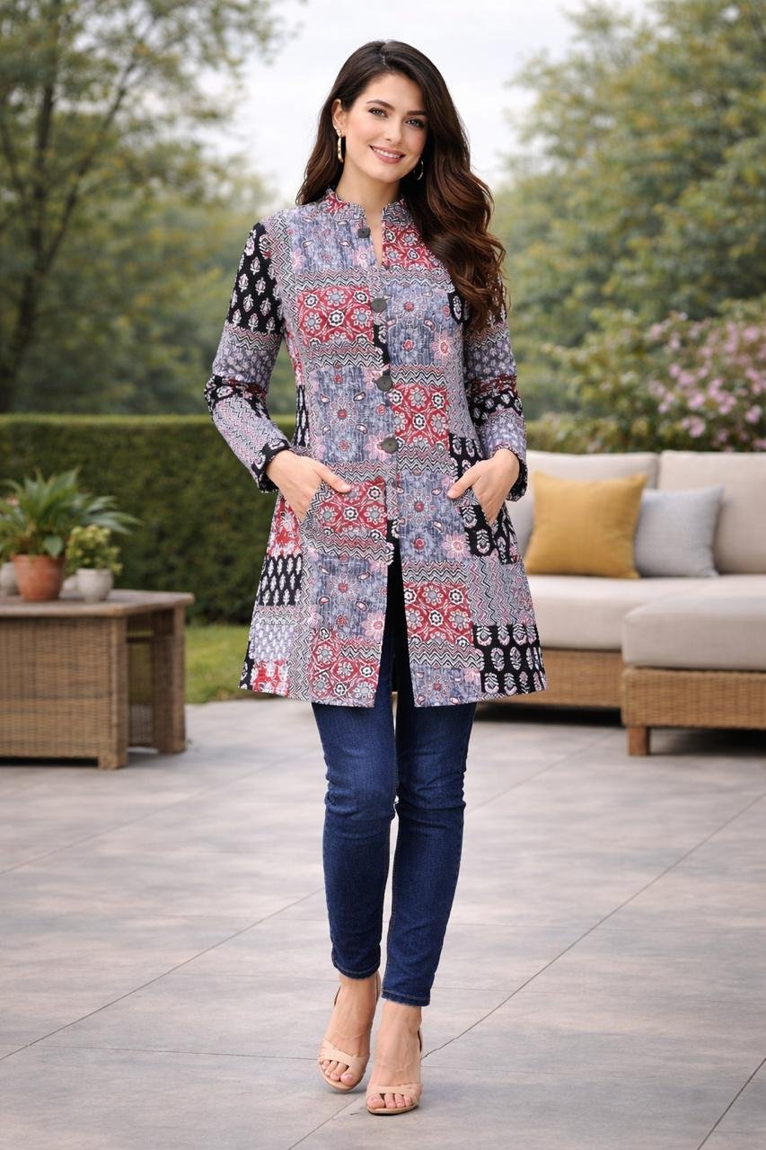 Add versatile elegance to your wardrobe with this women’s reversible long jacket, designed to offer two stylish looks in one. Featuring a beautifully detailed floral print on one side and a complementary reverse finish, this jacket blends comfort, functionality, and effortless fashion.